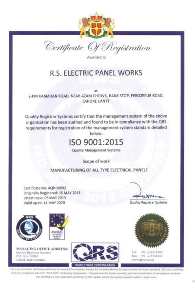 R.S Electric Panel Works follow quality strategy accordance with requirement laid out in the international standard QMS ISO 9001; 2015. Being a human we are strictly follow safety instructions and environmental policy throughout for all its processes procedures and operations.